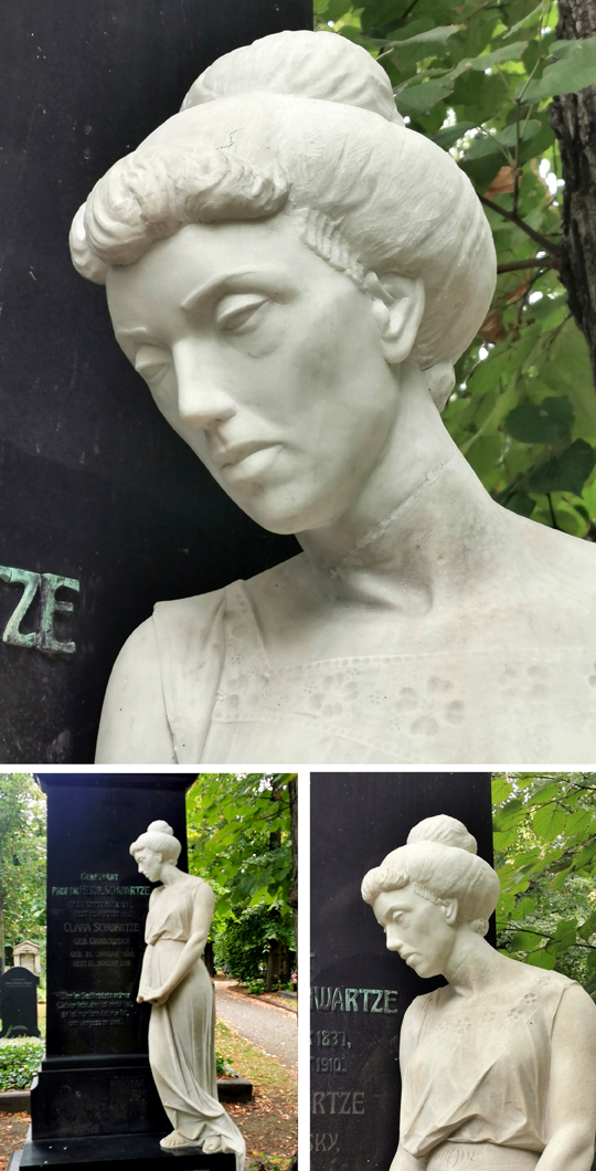 erfand ich den verlorenen Kopf der Grabfigur am Grabmal Prof. Dr. Heinrich Schwarze neu.
