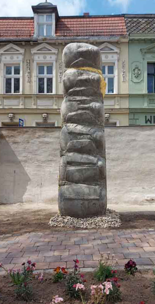 Die Stadt Beelitz kauft meine Grossplastik "Klone", Beton, Blattgold.