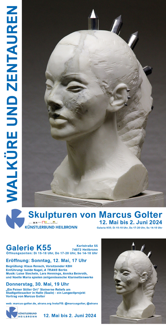 Bei der gemeinsamen Ausstellung zeigen die Künstler Skulpturen aus Stein. Beton und Metallguss. Ölbilder und Druckgrafik. Porzellanobjekte und Glasbilder.